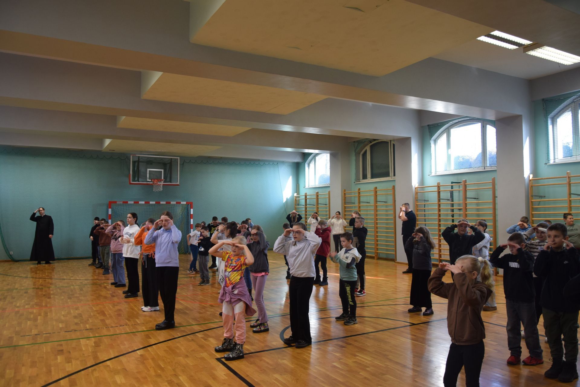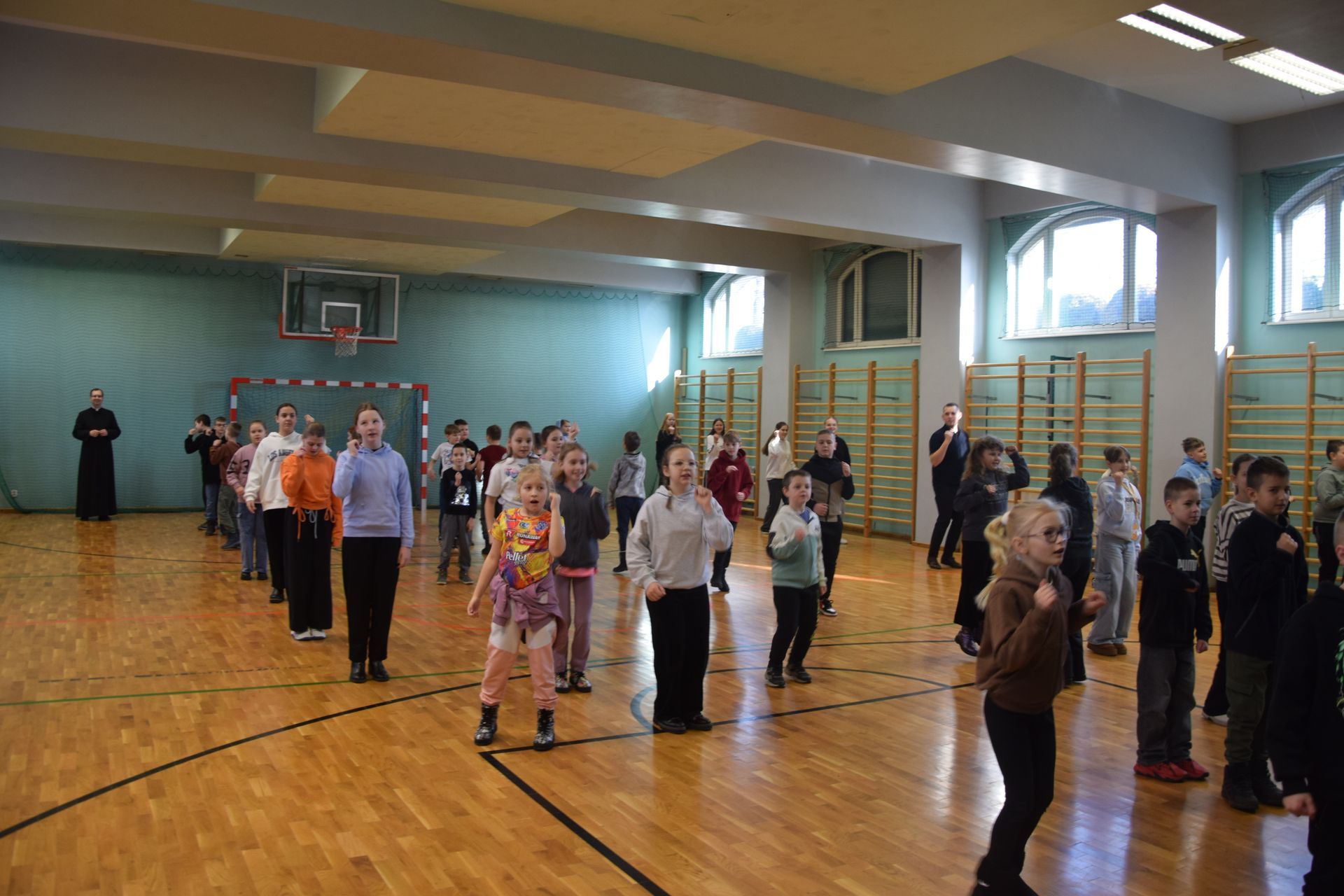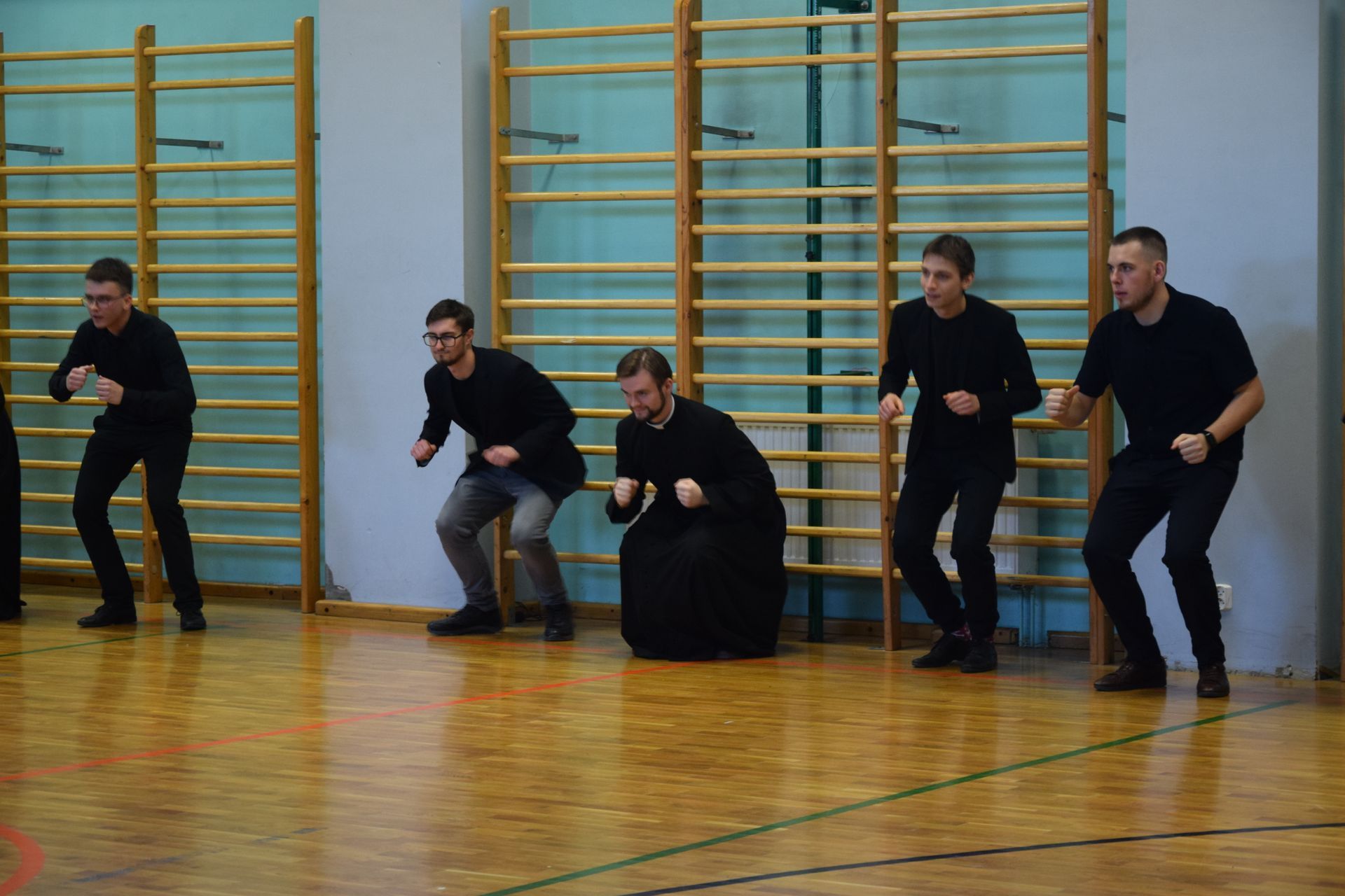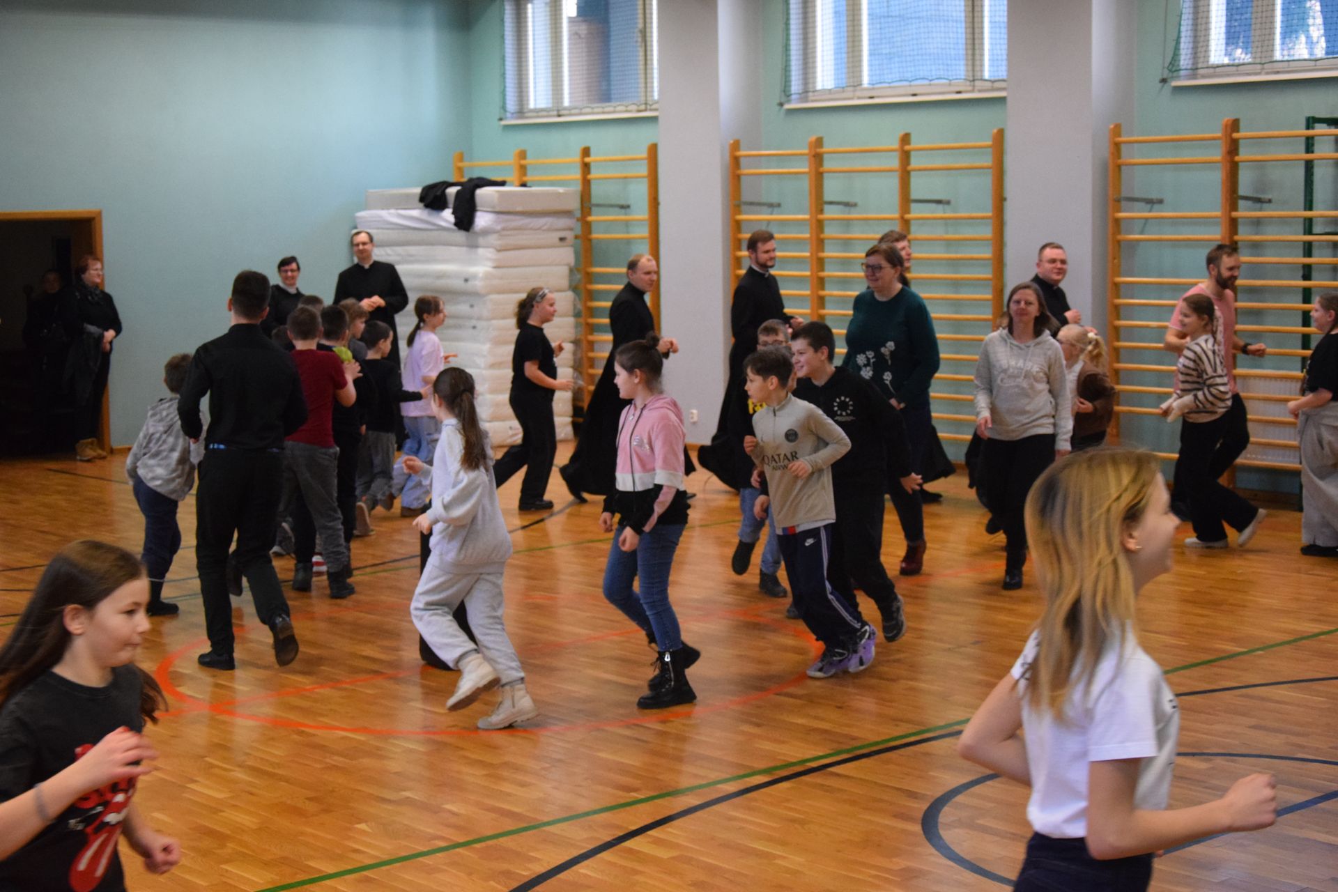 Po wspólnej modlitwie zeszliśmy do naszego seminaryjnego refektarza, aby się trochę posilić, po czym udaliśmy się razem na salę sportową, gdzie kl. Szymon, kl. Dawid oraz kl. Bartosz animowali i jednoczyli nas poprzez taniec.