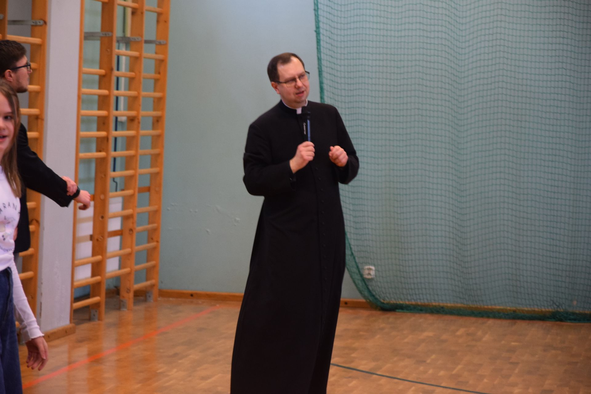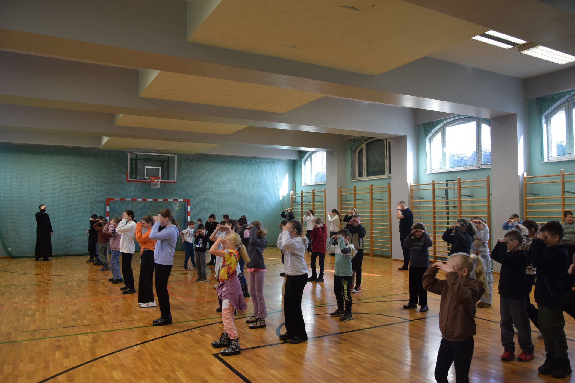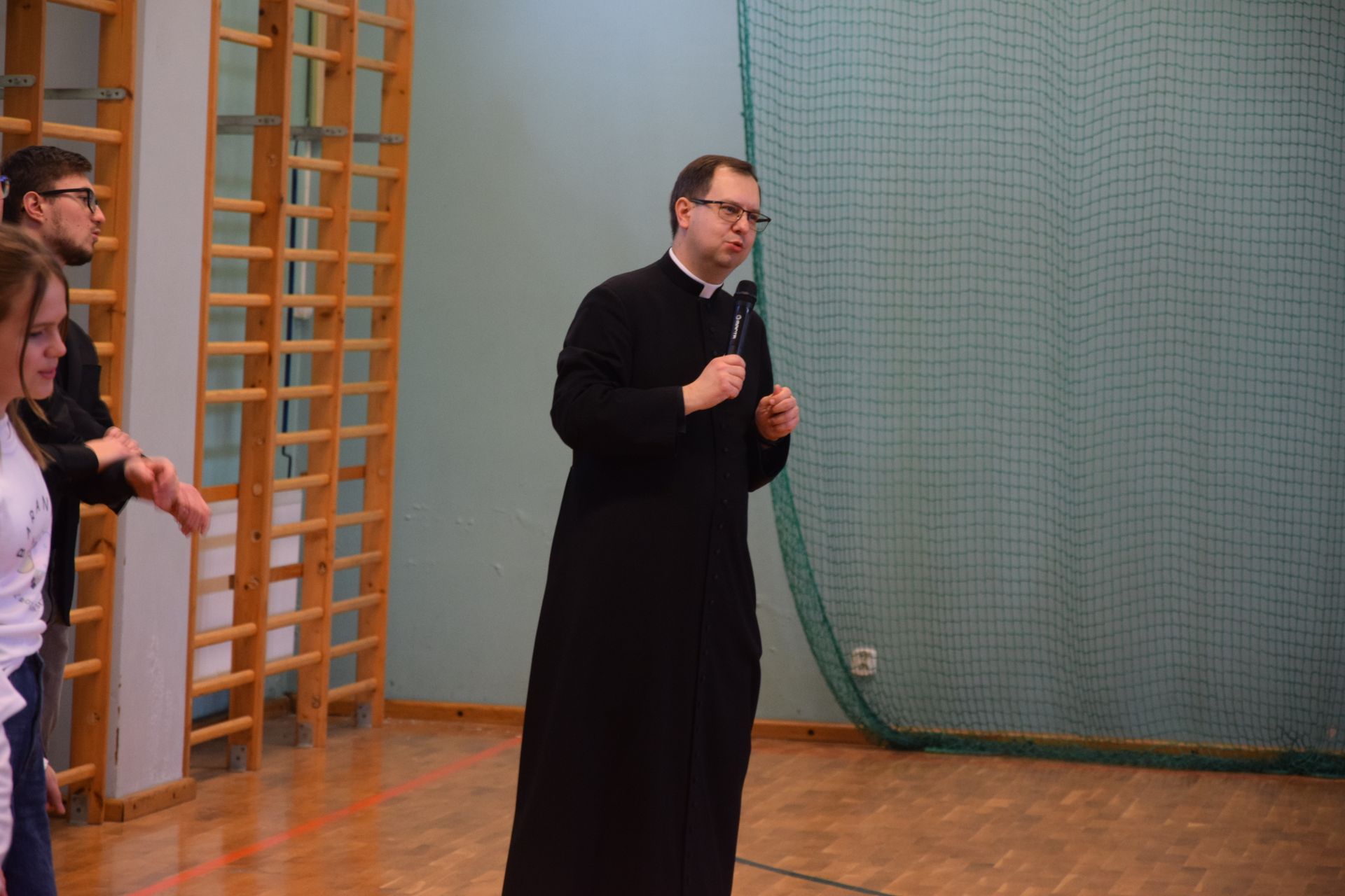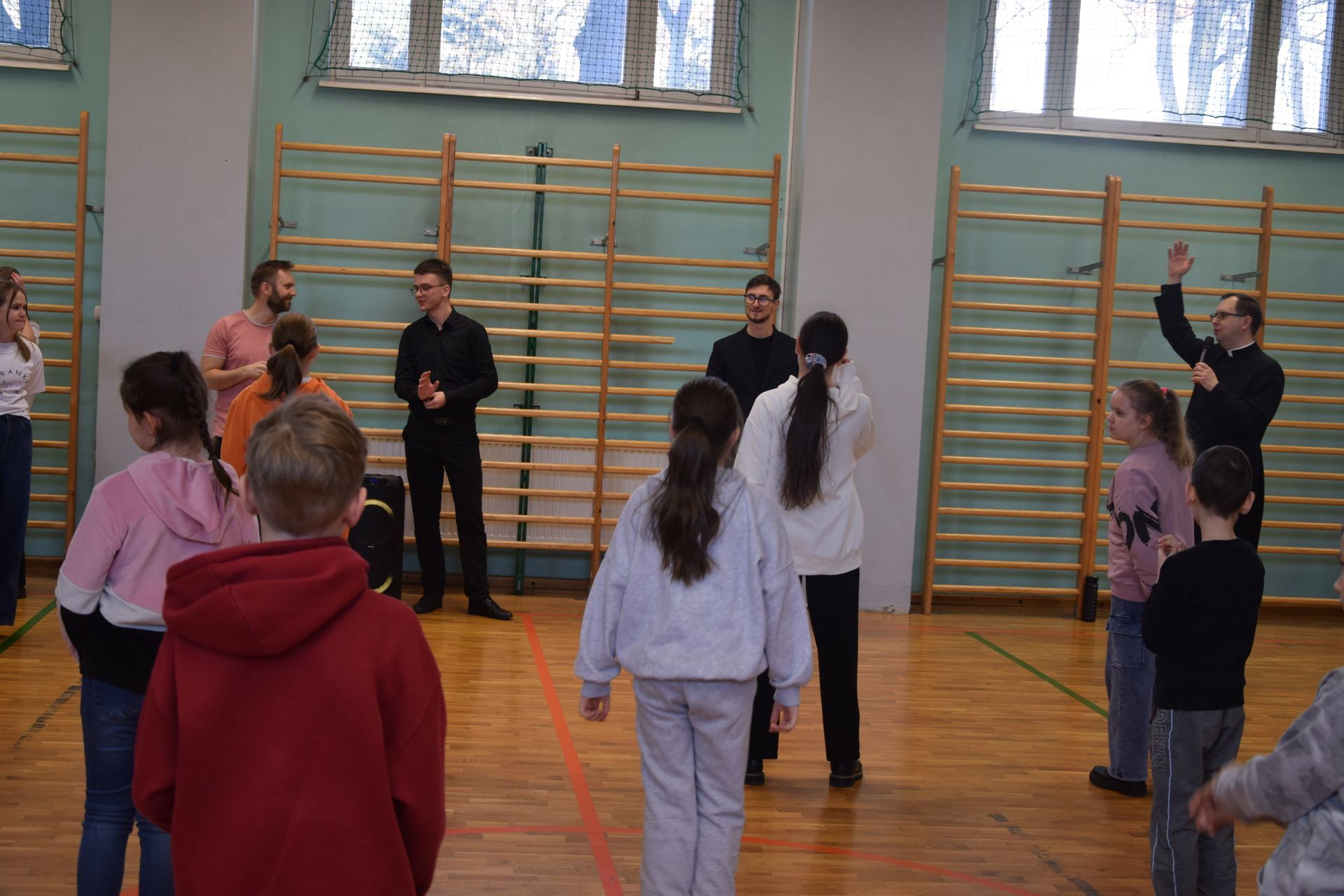 Po wspólnej modlitwie zeszliśmy do naszego seminaryjnego refektarza, aby się trochę posilić, po czym udaliśmy się razem na salę sportową, gdzie kl. Szymon, kl. Dawid oraz kl. Bartosz animowali i jednoczyli nas poprzez taniec.