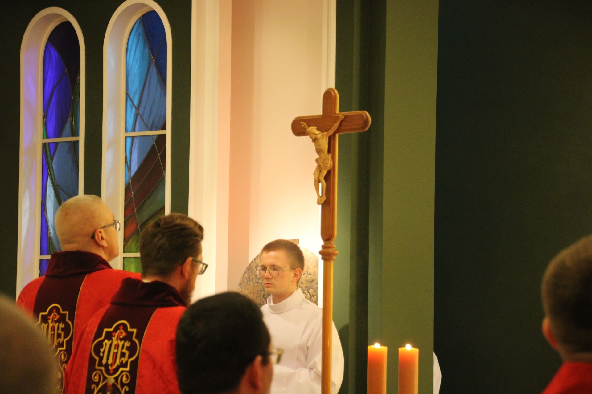Swoje słowo wygłosił drugi prefekt okresu propedeutycznego - ks. Dariusz Kuliński. Homilista w swoim słowie skierowanym do nas odniósł się do dzisiejszej liturgii słowa (Rz 3, 21-30a oraz Łk 11, 47-54). Podkreślał on konieczność trwania i dbania o naszą relację ze Słowem Bożym odnosząc ją do historii studni Izaaka (Rdz 26). W tym kontekście zauważył, że nasze serce powinno czerpać czystą, żywą wodę życia nie zanieczyszczoną błotem - do którego porównał postawy faryzeuszów z dzisiejszej Ewangelii.