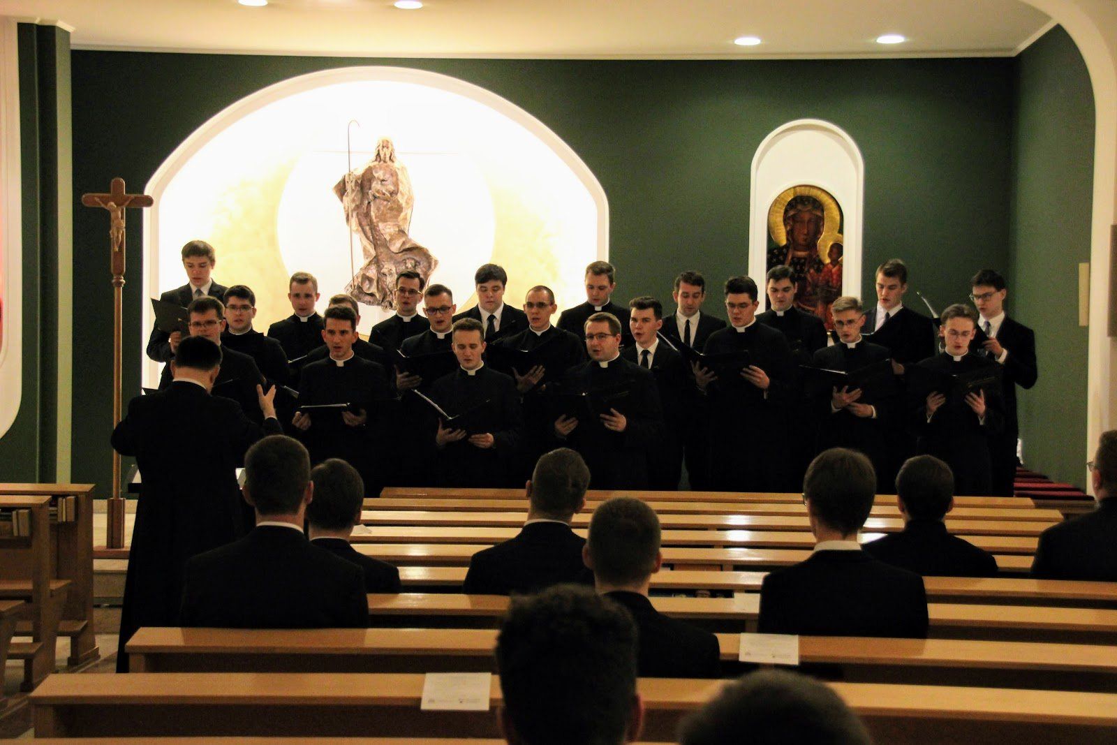 Po Eucharystii i wspólnej kolacji ponownie zebraliśmy się w seminaryjnej kaplicy, aby wysłuchać koncertu pt. „Spes nostra salve” w wykonaniu scholi „Inclina aurem”, która przygotowywała się pod czujnym okiem księdza profesora Białkowskiego oraz kleryka kantora. Wybór pieśni, odwołujących się do kultu maryjnego, związany był z kończącą się już peregrynacją obrazu Matki Bożej Częstochowskiej w archidiecezji poznańskiej.