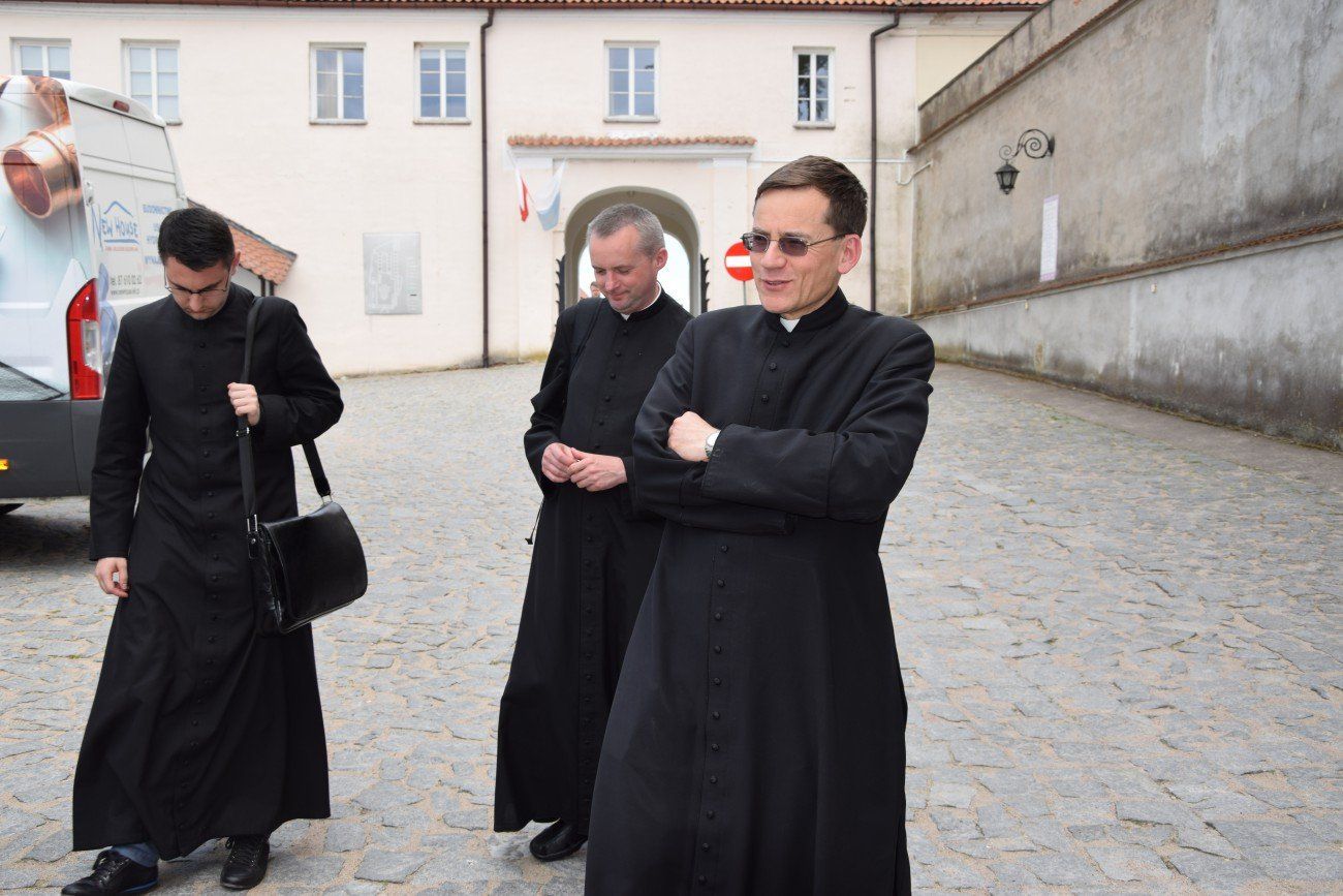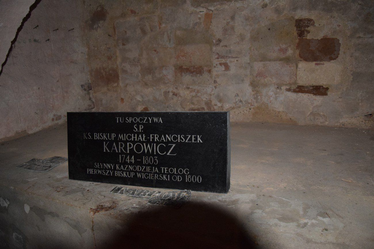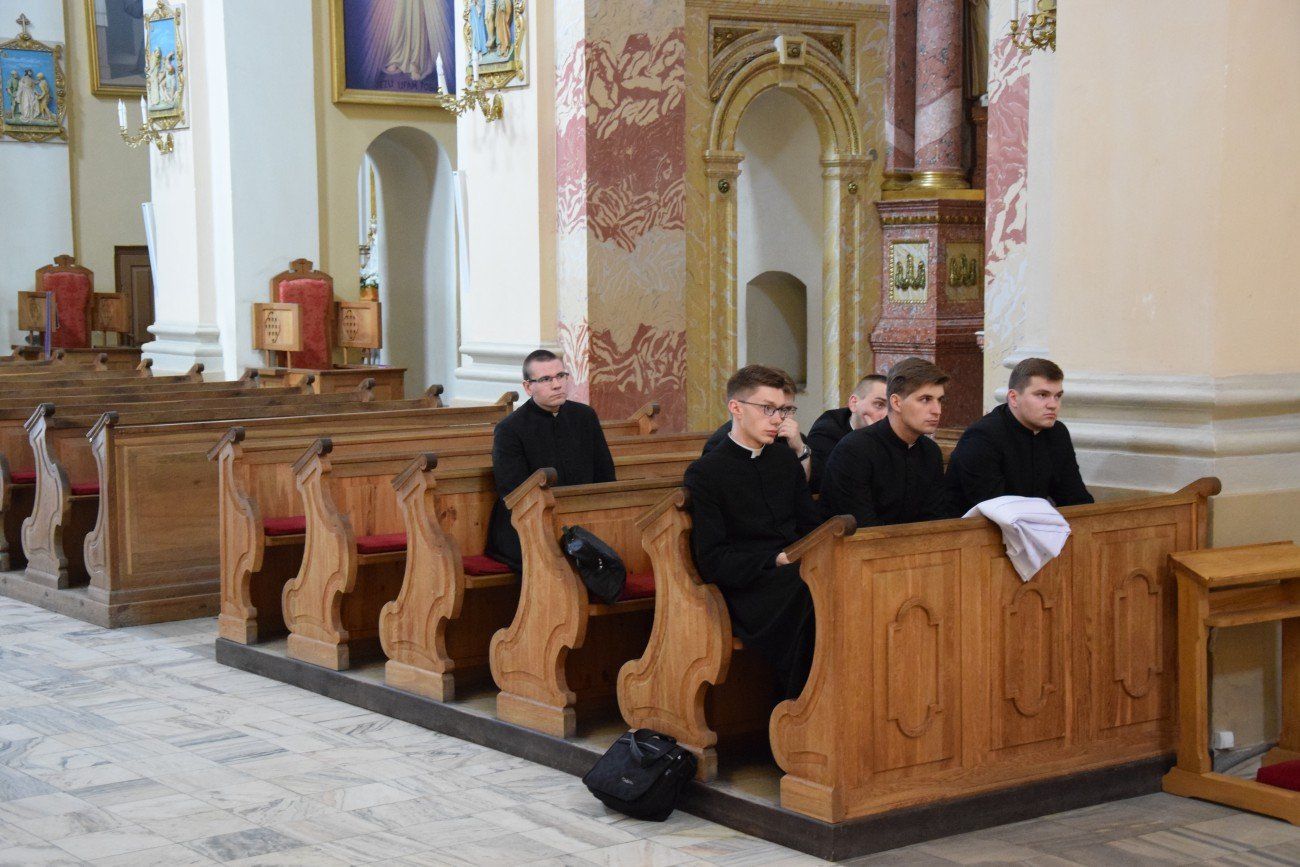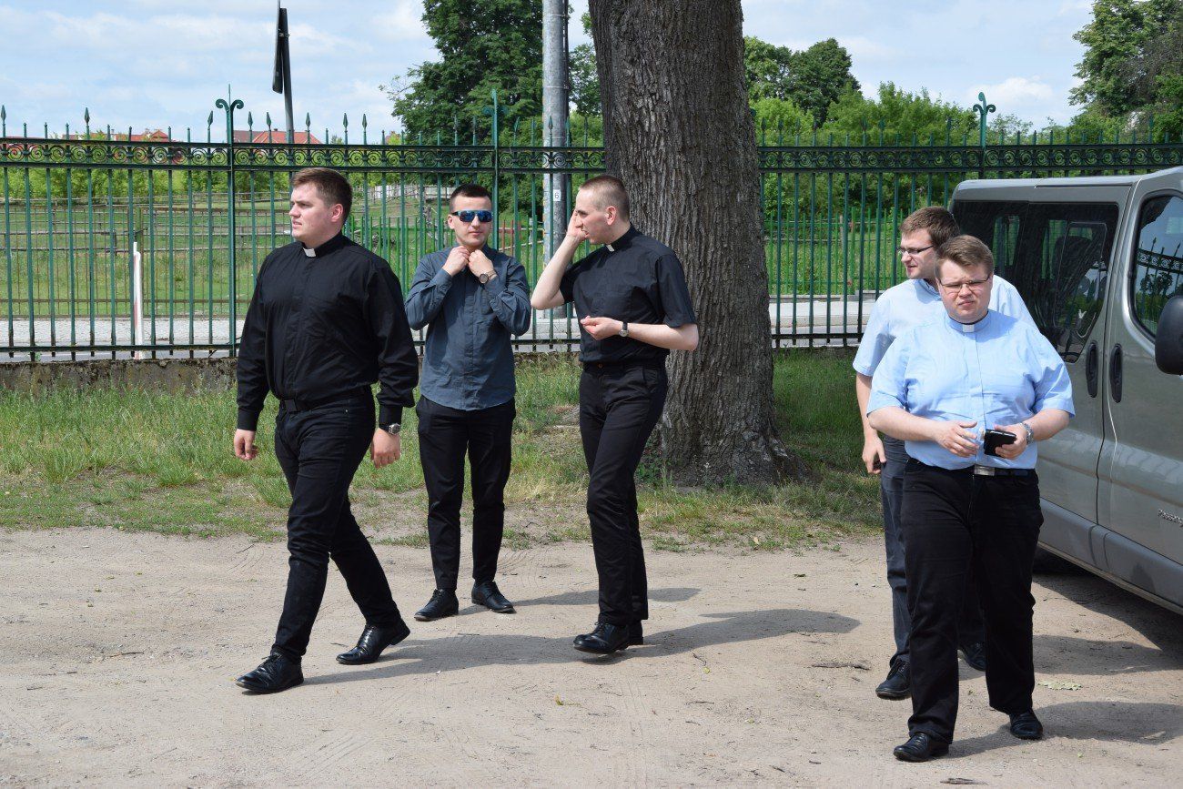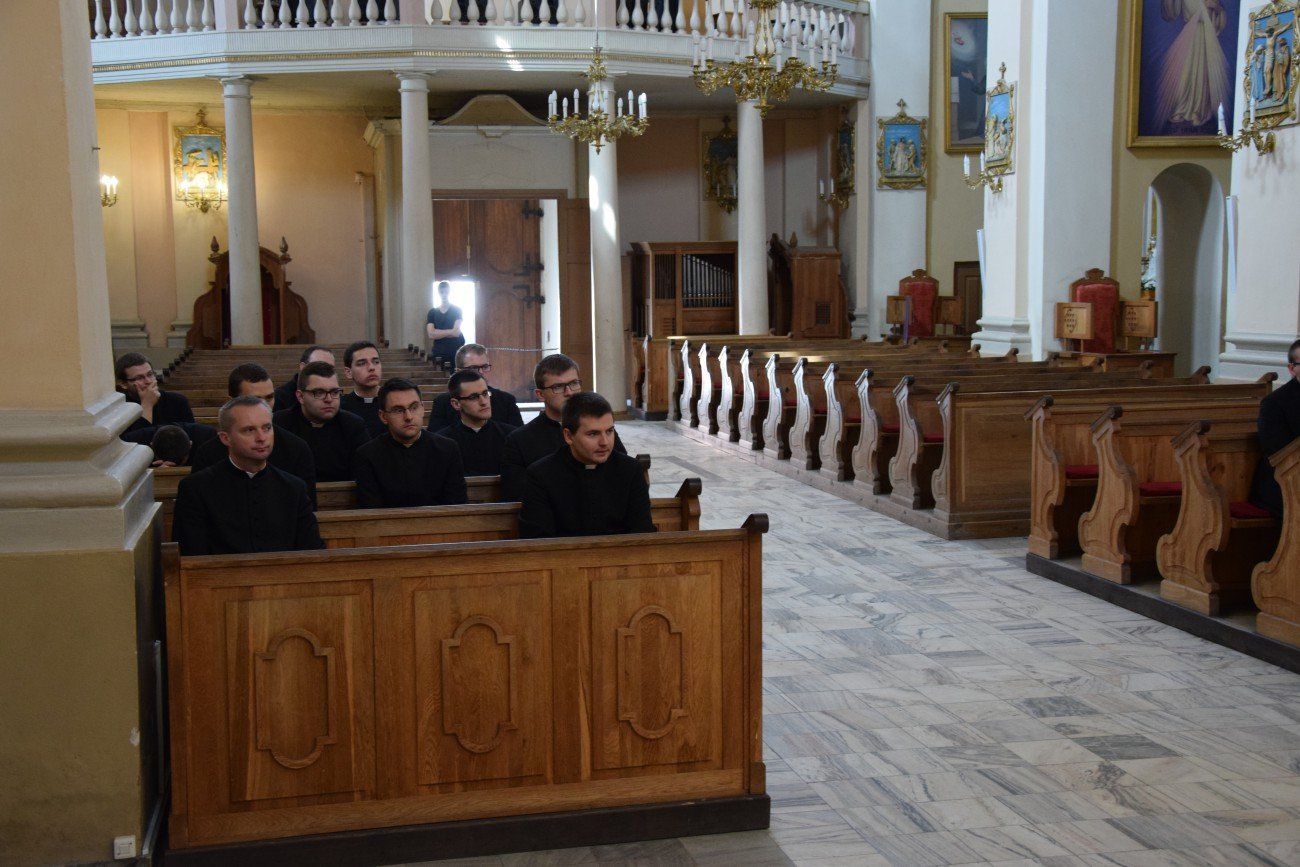 Pierwszego dnia, mimo zmęczenia, wszyscy klerycy wraz z ojcem duchownym wstali radośni i z niecierpliwością udali się do klasztoru pokamedulskiego położonego wśród malowniczego Jeziora Wigry, po którym oprowadził nas Ksiądz Jacek Stefański, który wcześniej wiele lat posługiwał w Wyższym Seminarium Duchownym w Kaliszu, pełniąc funkcję ojca duchownego. Cóż za wspaniała chwila, kiedy można spotkać kogoś, tak bardzo bliskiego naszym sercom, co było można poznać po serdecznych uśmiechach na twarzach. Po krótkim spotkaniu mieliśmy okazję przygotować się do Mszy Św., której przewodniczył ojciec Marcin Załężny. Ojciec Jacek Stefański, mimo, że nie mógł być w tym czasie na Mszy Św., to jednak przyszedł do nas po jej zakończeniu, aby opowiedzieć nam wiele o historii powstania Kościoła i w ogóle o historii tego malowniczego miejsca, które odwiedził nasz Wielki Polak – Jan Paweł II, ten cichy i pokorny człowiek, który naznaczył je swoją obecnością i świętością. Było to w roku 1999, od 8 do 10 czerwca, a mimo to pamięć o Nim jest żywa i rzeczywiście mogliśmy doświadczyć jej na sobie. Ksiądz Jacek opowiadał o wielkim wkładzie w rozwój najbliższej okolicy i trudzie, jaki włożyli na tym terenie Kameduli, aby szerzyć Królestwo Niebieskie łącząc to z rozwojem społeczeństwa. Wnętrze Kościoła jak i sam wystrój, ozdoby sakralne zostały dotkliwie zniszczone najpierw tuż przed I wojną światową a następnie podczas II wojny światowej w wyniku bombardowania wojsk rosyjskich. Ołtarz pierwotnie oddzielał prezbiterium od nawy głównej, w której modliło się 12 kamedułów. Następnie zeszliśmy do krypty, w której znajdowały się oryginalne malowidła i kości w zbiorowym grobie.