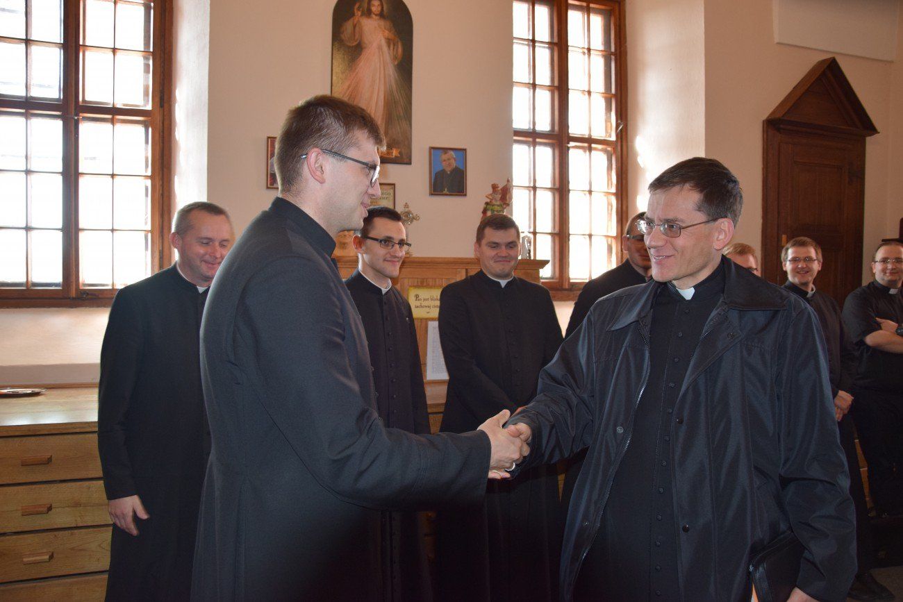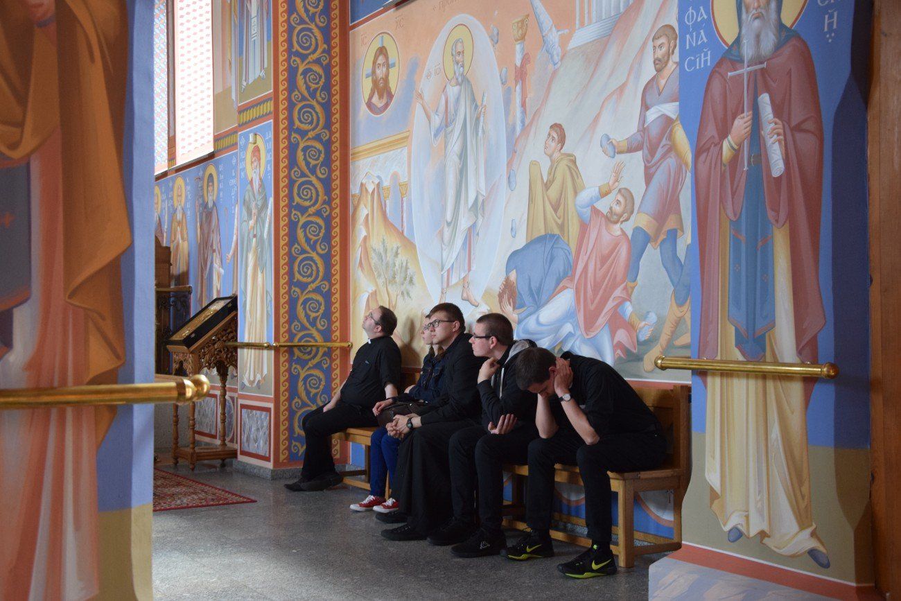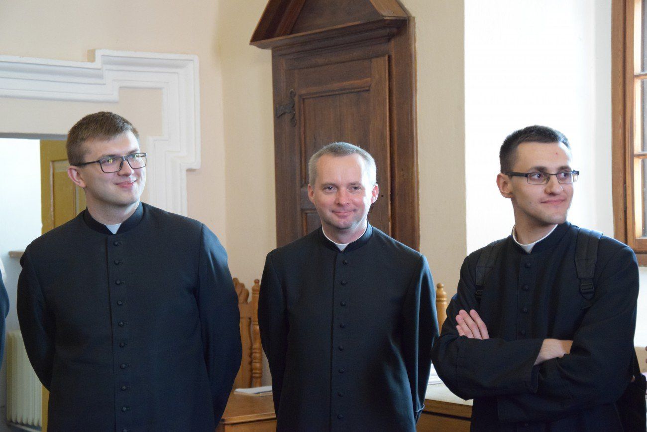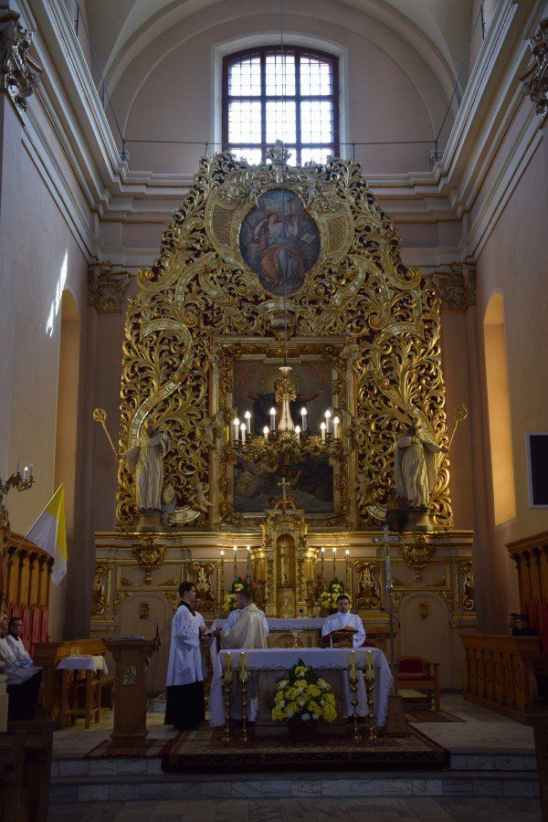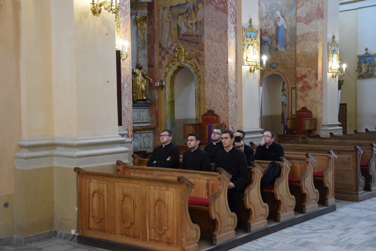 Pierwszego dnia, mimo zmęczenia, wszyscy klerycy wraz z ojcem duchownym wstali radośni i z niecierpliwością udali się do klasztoru pokamedulskiego położonego wśród malowniczego Jeziora Wigry, po którym oprowadził nas Ksiądz Jacek Stefański, który wcześniej wiele lat posługiwał w Wyższym Seminarium Duchownym w Kaliszu, pełniąc funkcję ojca duchownego. Cóż za wspaniała chwila, kiedy można spotkać kogoś, tak bardzo bliskiego naszym sercom, co było można poznać po serdecznych uśmiechach na twarzach. Po krótkim spotkaniu mieliśmy okazję przygotować się do Mszy Św., której przewodniczył ojciec Marcin Załężny. Ojciec Jacek Stefański, mimo, że nie mógł być w tym czasie na Mszy Św., to jednak przyszedł do nas po jej zakończeniu, aby opowiedzieć nam wiele o historii powstania Kościoła i w ogóle o historii tego malowniczego miejsca, które odwiedził nasz Wielki Polak – Jan Paweł II, ten cichy i pokorny człowiek, który naznaczył je swoją obecnością i świętością. Było to w roku 1999, od 8 do 10 czerwca, a mimo to pamięć o Nim jest żywa i rzeczywiście mogliśmy doświadczyć jej na sobie. Ksiądz Jacek opowiadał o wielkim wkładzie w rozwój najbliższej okolicy i trudzie, jaki włożyli na tym terenie Kameduli, aby szerzyć Królestwo Niebieskie łącząc to z rozwojem społeczeństwa. Wnętrze Kościoła jak i sam wystrój, ozdoby sakralne zostały dotkliwie zniszczone najpierw tuż przed I wojną światową a następnie podczas II wojny światowej w wyniku bombardowania wojsk rosyjskich. Ołtarz pierwotnie oddzielał prezbiterium od nawy głównej, w której modliło się 12 kamedułów. Następnie zeszliśmy do krypty, w której znajdowały się oryginalne malowidła i kości w zbiorowym grobie.