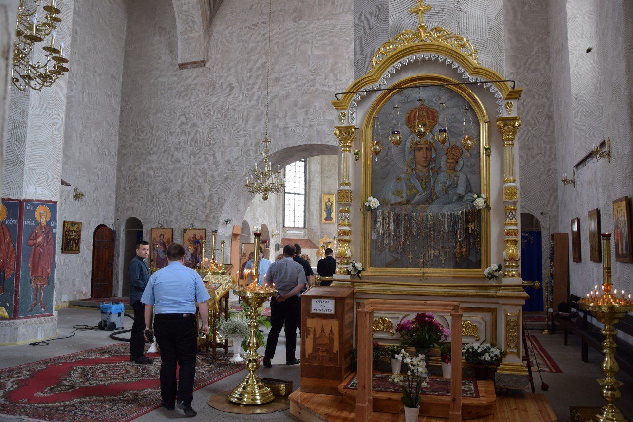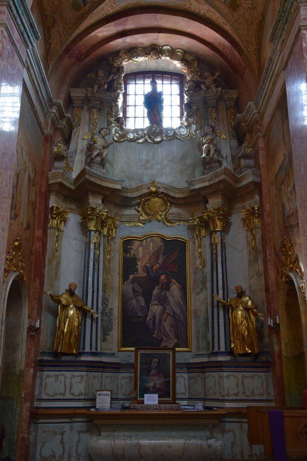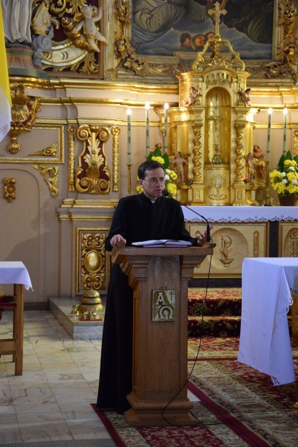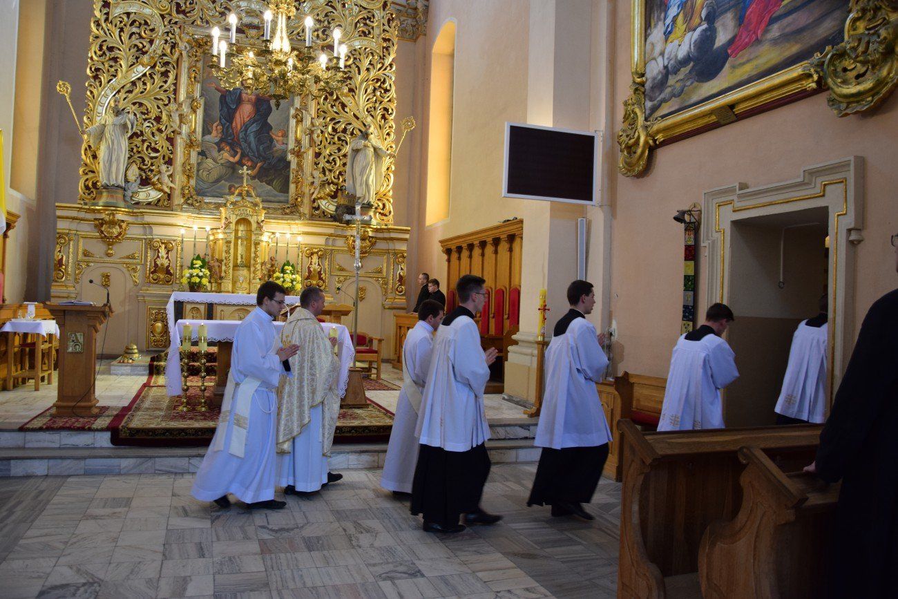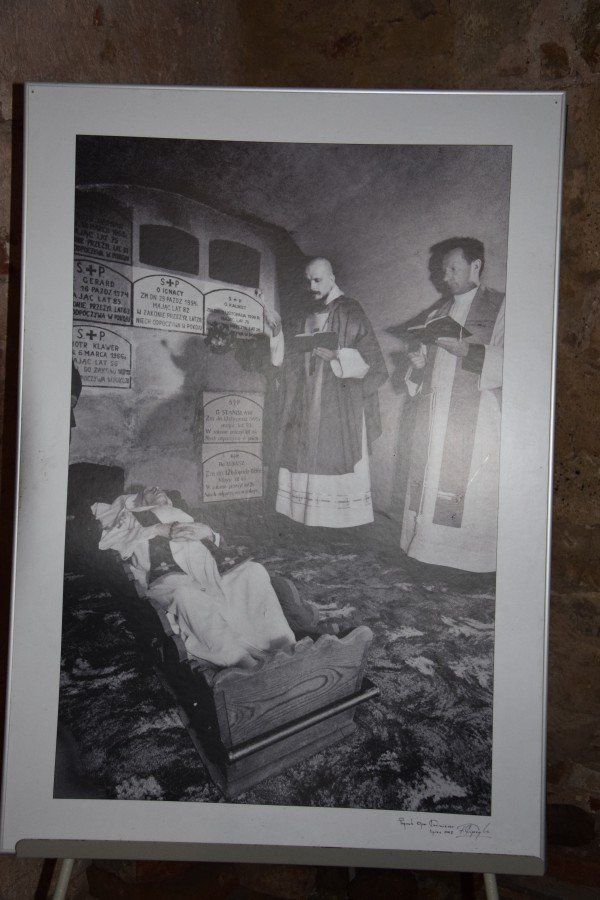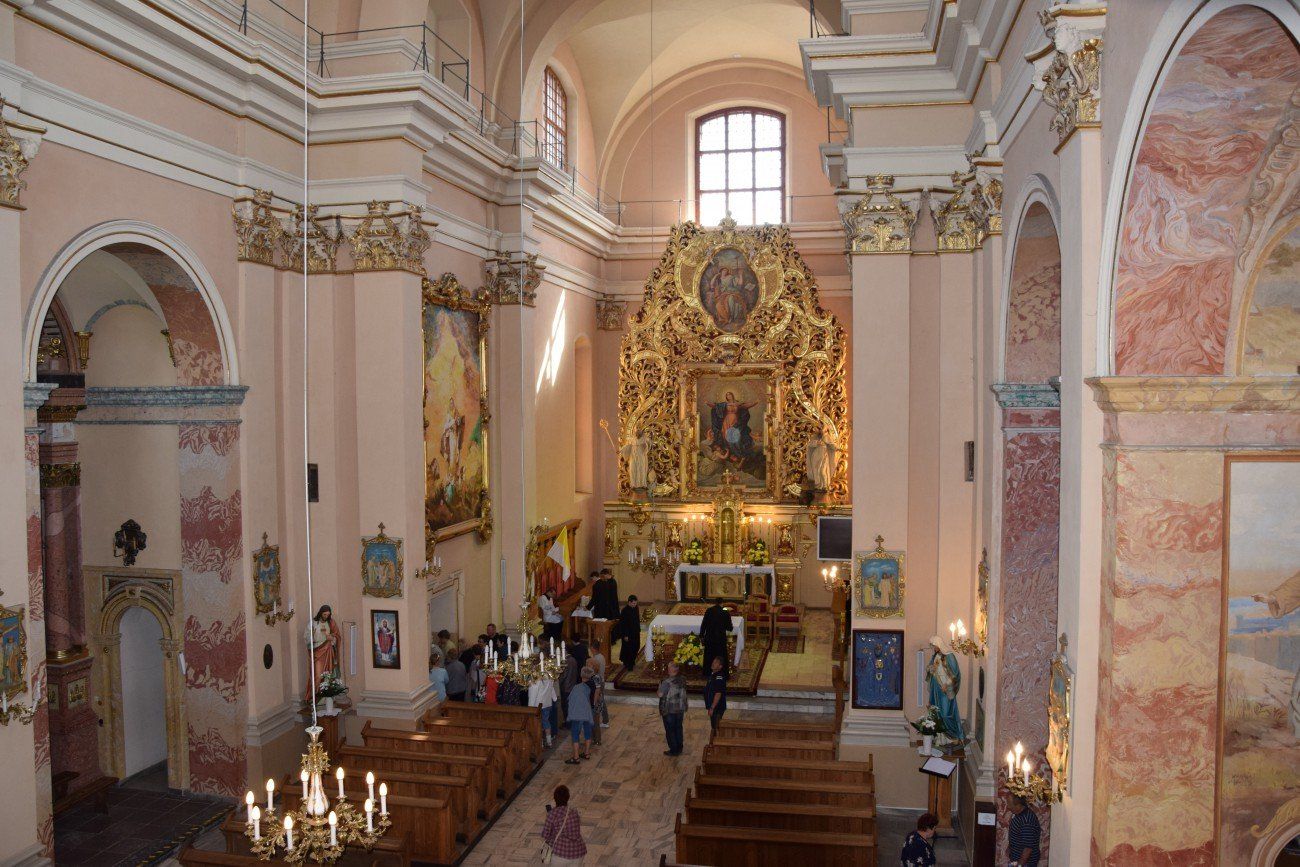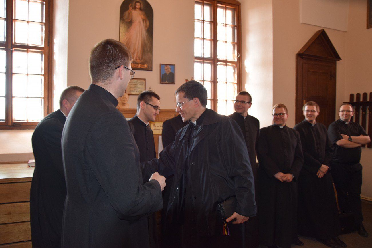 Pierwszego dnia, mimo zmęczenia, wszyscy klerycy wraz z ojcem duchownym wstali radośni i z niecierpliwością udali się do klasztoru pokamedulskiego położonego wśród malowniczego Jeziora Wigry, po którym oprowadził nas Ksiądz Jacek Stefański, który wcześniej wiele lat posługiwał w Wyższym Seminarium Duchownym w Kaliszu, pełniąc funkcję ojca duchownego. Cóż za wspaniała chwila, kiedy można spotkać kogoś, tak bardzo bliskiego naszym sercom, co było można poznać po serdecznych uśmiechach na twarzach. Po krótkim spotkaniu mieliśmy okazję przygotować się do Mszy Św., której przewodniczył ojciec Marcin Załężny. Ojciec Jacek Stefański, mimo, że nie mógł być w tym czasie na Mszy Św., to jednak przyszedł do nas po jej zakończeniu, aby opowiedzieć nam wiele o historii powstania Kościoła i w ogóle o historii tego malowniczego miejsca, które odwiedził nasz Wielki Polak – Jan Paweł II, ten cichy i pokorny człowiek, który naznaczył je swoją obecnością i świętością. Było to w roku 1999, od 8 do 10 czerwca, a mimo to pamięć o Nim jest żywa i rzeczywiście mogliśmy doświadczyć jej na sobie. Ksiądz Jacek opowiadał o wielkim wkładzie w rozwój najbliższej okolicy i trudzie, jaki włożyli na tym terenie Kameduli, aby szerzyć Królestwo Niebieskie łącząc to z rozwojem społeczeństwa. Wnętrze Kościoła jak i sam wystrój, ozdoby sakralne zostały dotkliwie zniszczone najpierw tuż przed I wojną światową a następnie podczas II wojny światowej w wyniku bombardowania wojsk rosyjskich. Ołtarz pierwotnie oddzielał prezbiterium od nawy głównej, w której modliło się 12 kamedułów. Następnie zeszliśmy do krypty, w której znajdowały się oryginalne malowidła i kości w zbiorowym grobie.