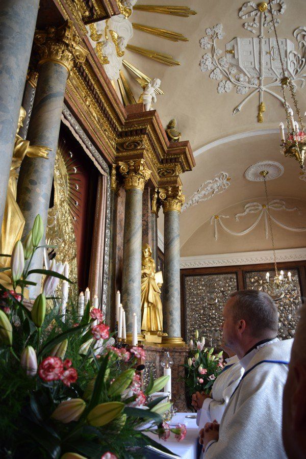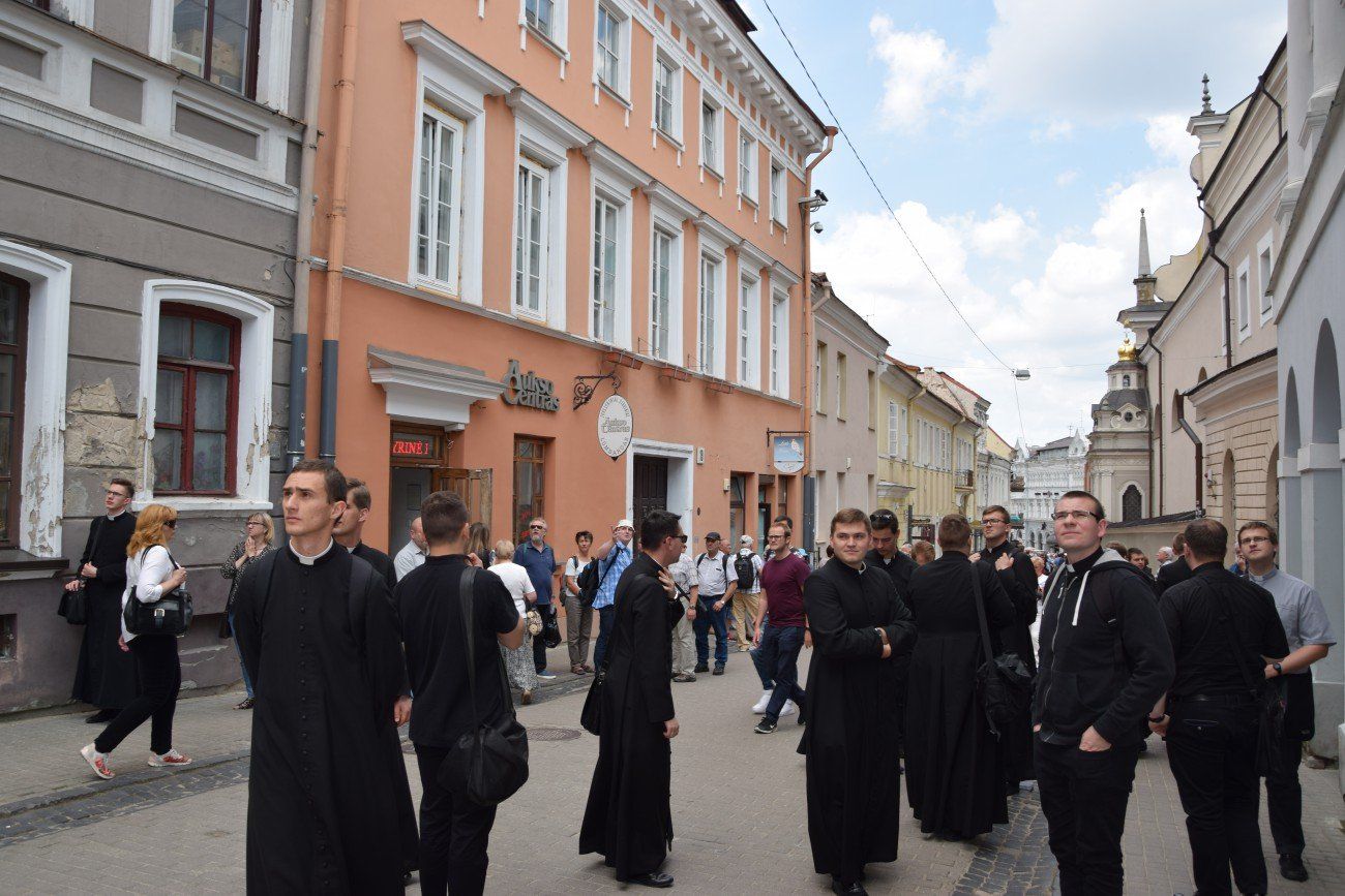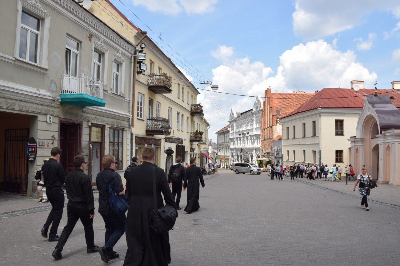 W drugim dniu, naszym celem było Sanktuarium Matki Bożej Ostrobramskiej w Wilnie. Podążając drogą do Wilna mogliśmy również podziwiać tamtejsze malownicze, litewskie krajobrazy. Po przyjeździe, pierwsze kroki skierowaliśmy do wizerunkowi Matki Bożej Ostrobramskiej, aby powierzyć jej nasze Seminarium oraz nasze osobiste sprawy. W ramach wolnego czasu, zwiedzaliśmy starówkę oraz urokliwe centrum Wilna, które jest nam Polakom, tak bardzo bliskie ze względu na obecność Polaków oraz ze względu na historię tego miasta, która jest zależna od historii Rzeczypospolitej Polskiej. O godzinie 1400 została odprawiona Msza Św., w której ksiądz kaznodzieja kładł szczególny nacisk na znaczenie Matki Bożej ochraniającej nas swoim płaszczem a także zwrócił uwagę na fakt, iż nie bez znaczenia jest to, że kiedy pątnik opuszcza Ostrą Bramę to spotyka się ze wzrokiem Maryi i w ten sposób opuszcza to miejsce, będąc chronionym przez Maryję. Poza tym w Wilnie zajrzeliśmy do cerkwi prawosławnej, w której wystawione były ciała trzech męczenników wileńskich. Mimo zapowiadanej deszczowej pogody również w Wilnie mogliśmy cieszyć się słońcem. Aż chce się powiedzieć, że Maryja zatroszczyła się, abyśmy mieli pogodę odpowiednią do zwiedzania.