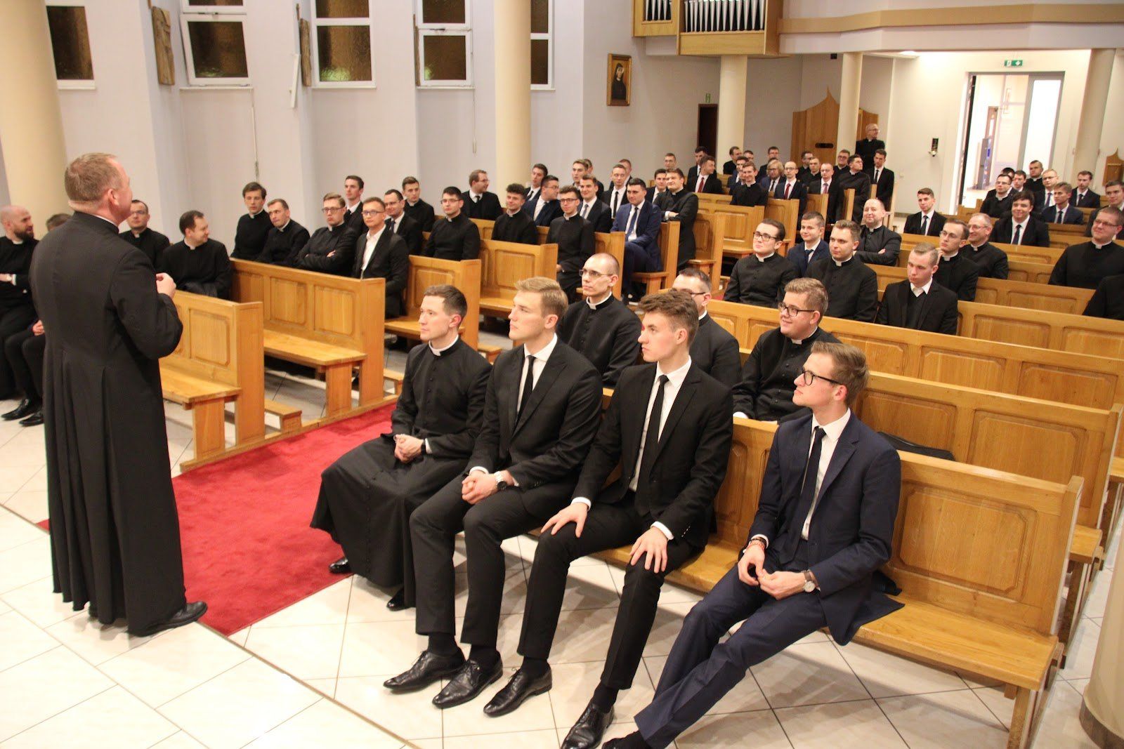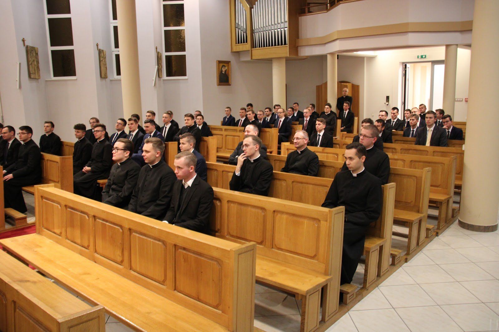 Tegoroczne rekolekcje adwentowe przeżywaliśmy w dniach 09-14 listopada i poprowadził je dla nas o. Janusz Chwast OP. Podczas rekolekcji towarzyszył nam cytat św. Katarzyny ze Sieny: "Dusza zamieszkuje celę poznania siebie, w której jest druga cela poznania dobroci Boga". W trakcie konferencji, o. Janusz przedstawił nam wiele myśli świętych, m.in. św. Katarzyny ze Sieny, św. s. Faustyny Kowalskiej, czy też św. Bernarda z Clairvaux. Rekolekcjonista przekazał nam także wiele myśli na temat pychy, modlitwy, pokory, życia w prawdzie i poznaniu samego siebie, czym modlitwa powinna być. Przekazał nam w naukach również swoje doświadczenie z bycia Magistrem nowicjuszy w klasztorze oo. Dominikanów w Warszawie na Służewie przez wiele lat. W swoich rozważaniach ojciec dominikanin chciał nam przekazać bardzo ważną kwestię dotyczącą relacji z Bogiem: "Poznanie siebie jest wprost proporcjonalne do poznania Boga. Im lepiej będziemy znali siebie, tym lepiej będziemy znali Boga". - powiedział rekolekcjonista Dziękujemy o. Januszowi za przekazanie nam wielu tak ważnych i wartościowych myśli, konkretnie odnoszących się do naszego życia, podzieleniem się z nami swoim doświadczeniem z przepowiadania i życia kapłańskiego oraz poprowadzenie nas przez ten czas wraz z myślami wielu świętych. Pamiętajmy o modlitwie w intencji o. Janusza, aby w dalszym ciągu poddawał się natchnieniom Ducha Świętego i wypełniał swoje powołanie do głoszenia Ewangelii według zamysłu Bożego. Zdjęcia za: Arcybiskupie Seminarium Duchowne
