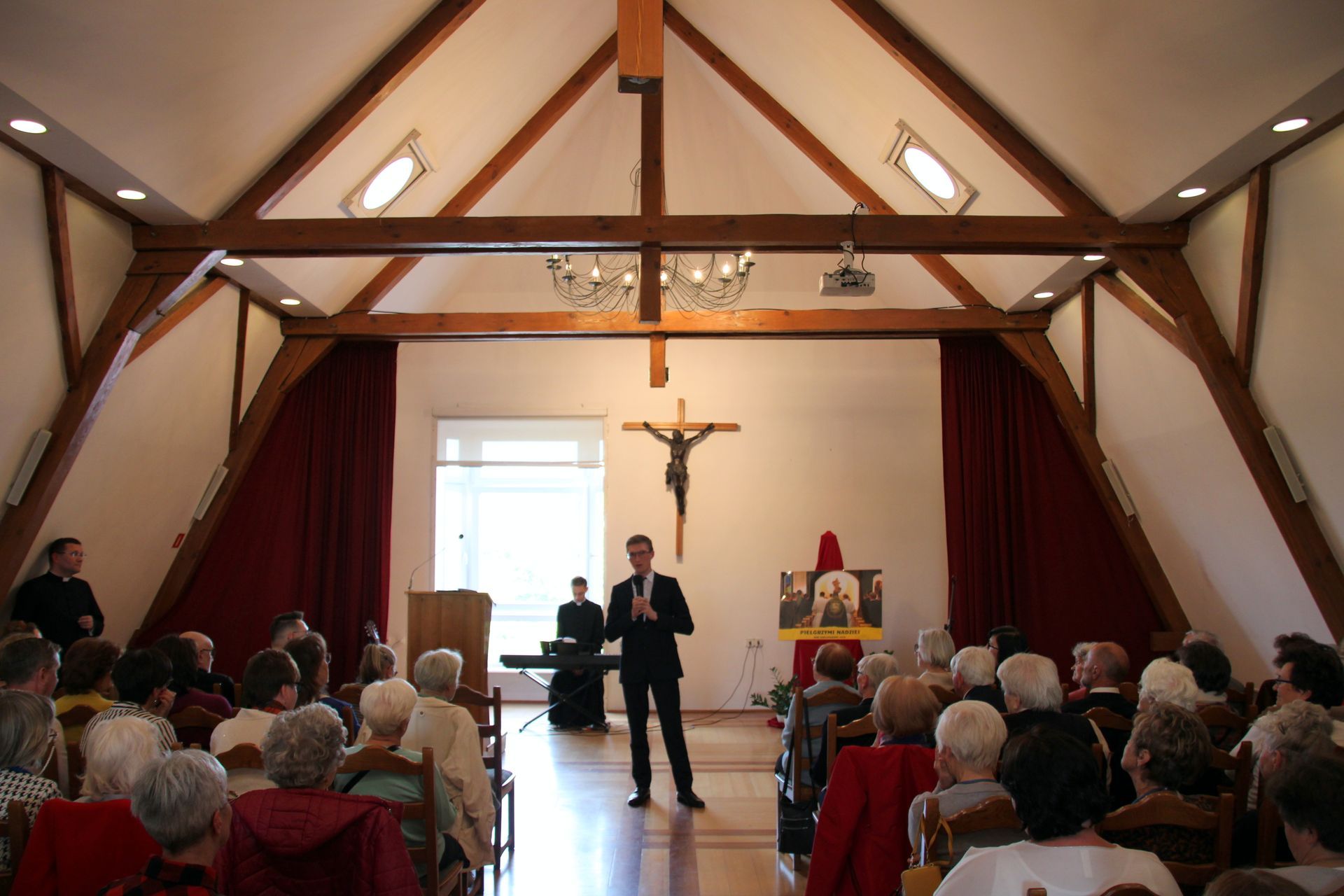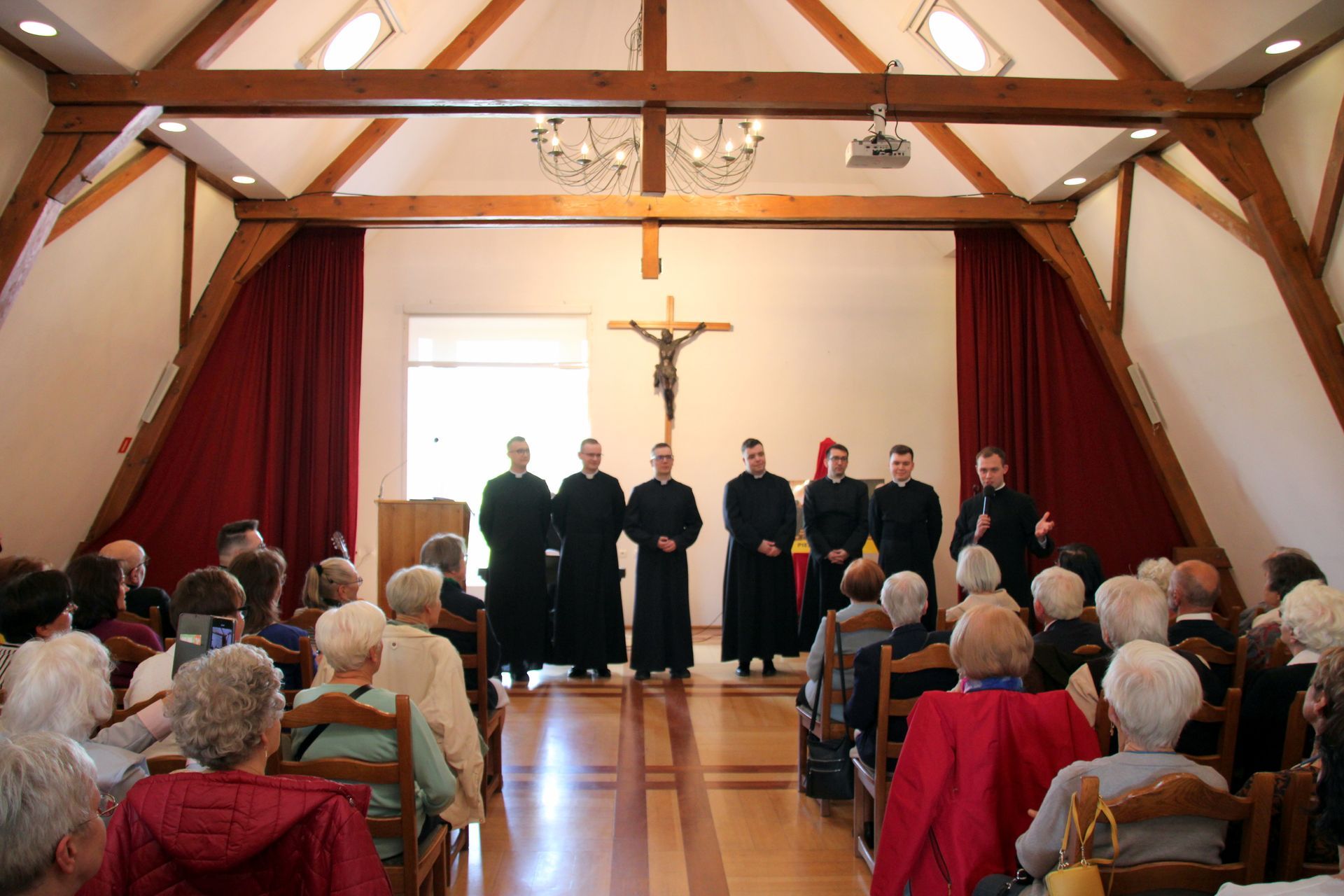 Później zgromadziliśmy się w auli Arcybiskupiego Seminarium Duchownego, aby trochę o sobie opowiedzieć. Każdy kurs miał swojego przedstawiciela, który w skrócie opowiedział jak wygląda życie na danym roku w seminarium. Na koniec razem zaśpiewaliśmy Litanię loretańską i zakończyliśmy punkty wspólne naszego świętowania.