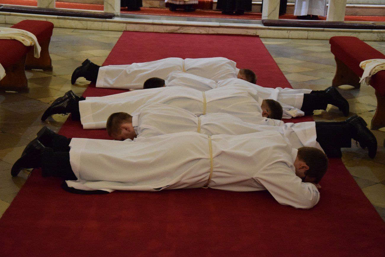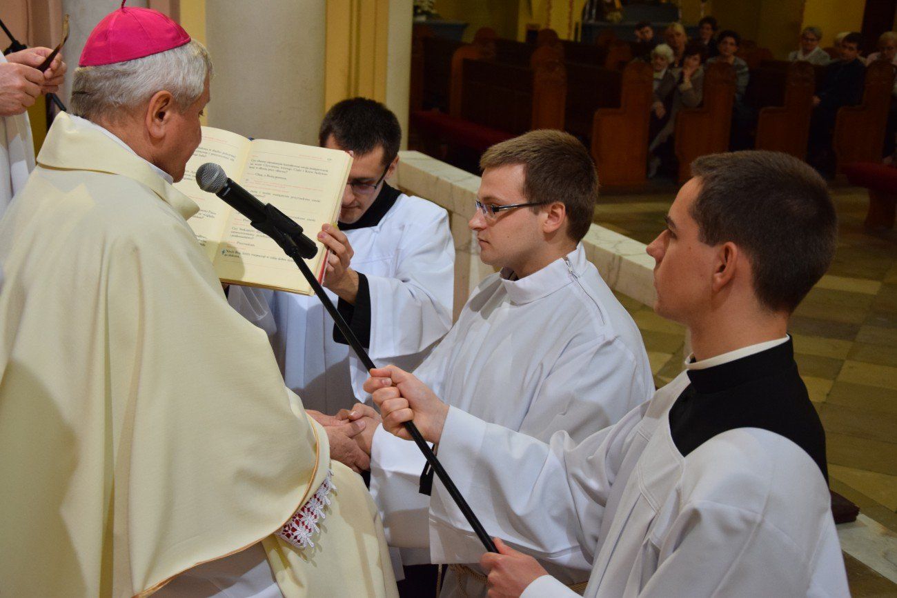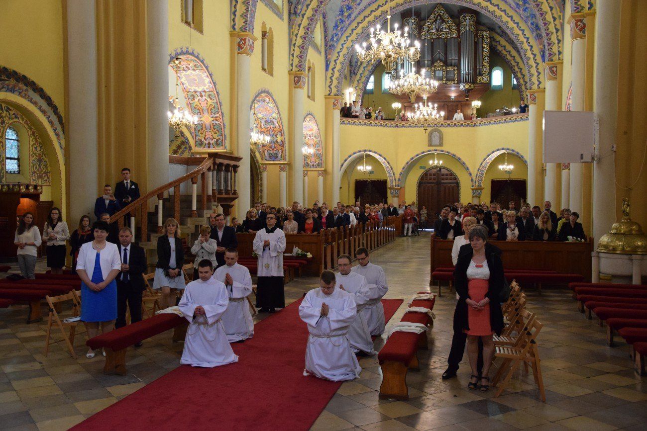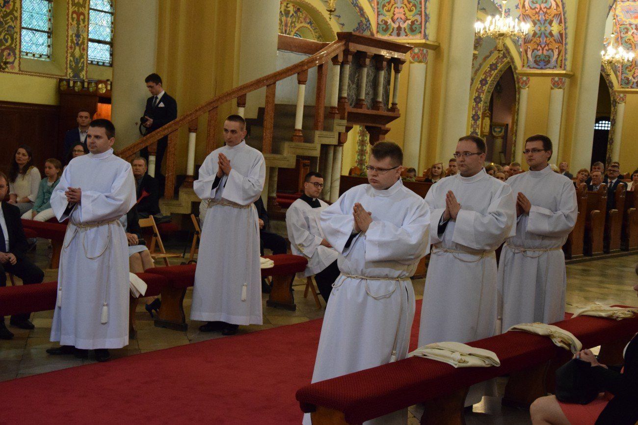 W sobotę, 20 maja 2017 roku o godzinie 11:00 w ostrowskiej Konkatedrze rozpoczęła się uroczysta Msza Święta, w czasie której pięciu alumnów V roku naszego seminarium przyjęło święcenia kapłańskie w stopniu diakonatu a jeden alumn został włączony do grona kandydatów do święceń.