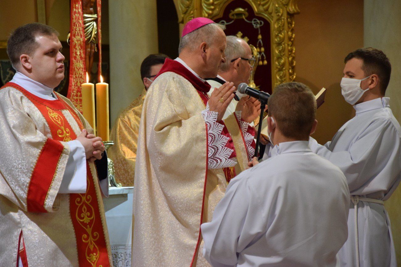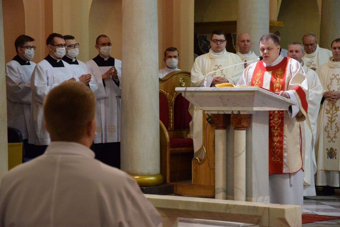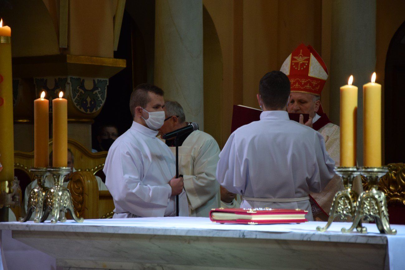 Wskazał, że w centrum życia diakona zawsze powinien być Chrystus. – Prośmy dzisiaj Matkę Najświętszą, św. Józefa i świętych patronów, aby alumn przyjmujący święcenia diakonatu stawał się na tej drodze człowiekiem dojrzałym we wspólnocie Kościoła, aby wzrastał w dojrzałości chrześcijańskiej i był dobrym kapłanem – mówił bp Buzun.